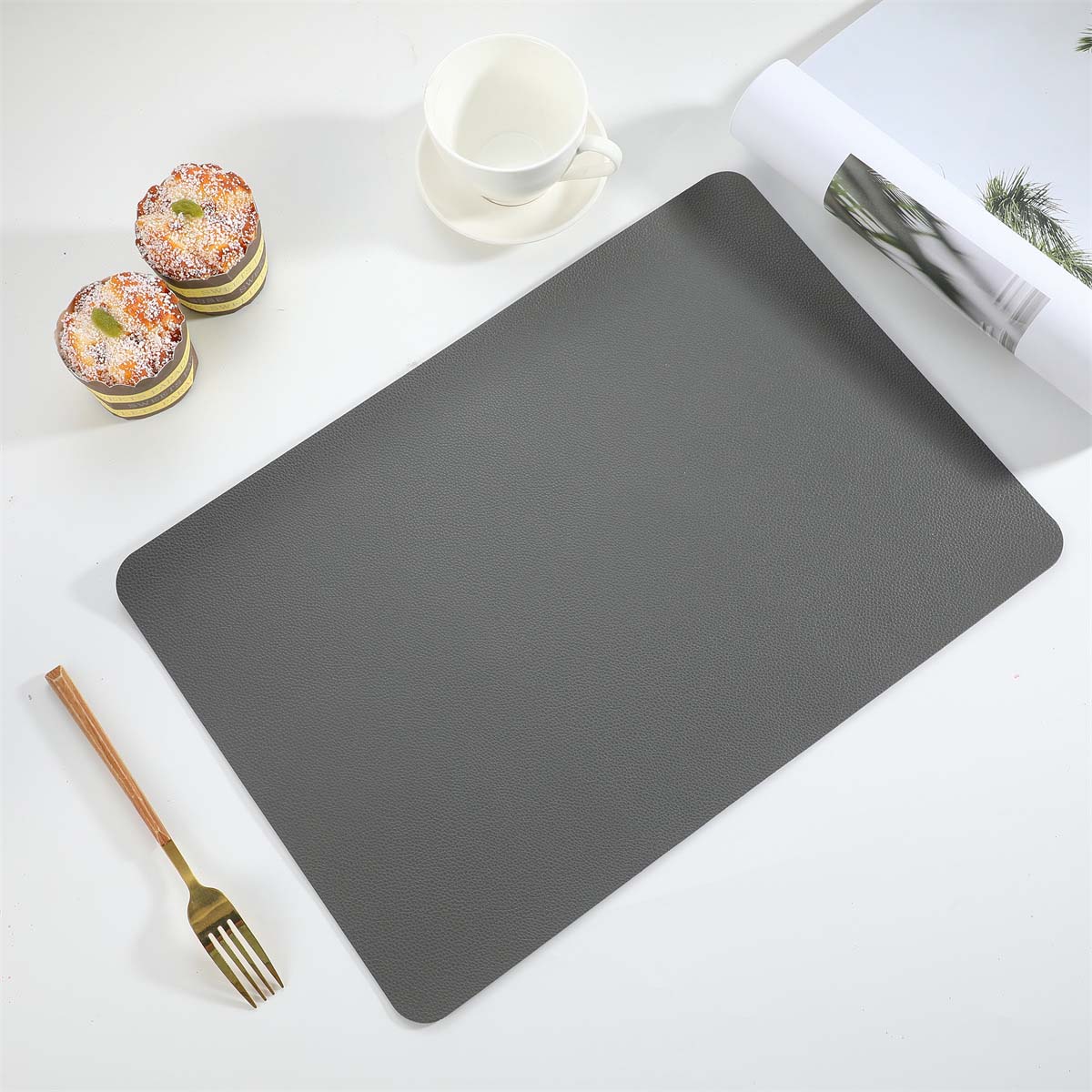 4-Pack Bordstablett i Konstläder Rektangulär Mörkgrå 43x30cm
