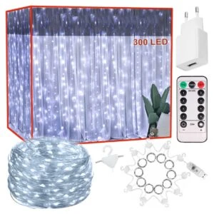 LED Gardin USB Ljusslinga med Fjärrkontroll 300 LED 3m Kall Vit