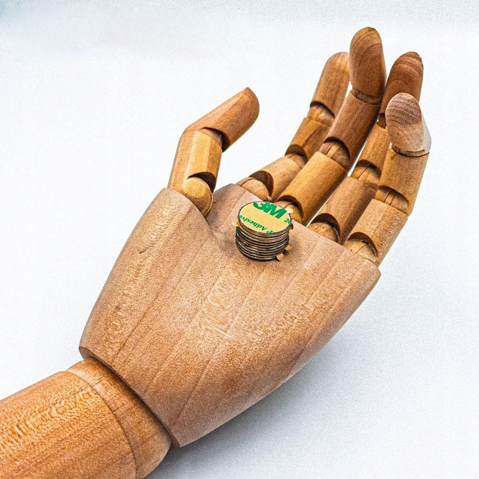 Dessa neodymplattmagneter är små men otroligt starka! Med en självhäftande 3M-tejp på baksidan är de lätta att fästa på olika ytor utan krångel. Perfekta för att hålla fast saker på metalliska ytor, skapa egna DIY-projekt, eller som en smart lösning hemma och på jobbet. Magneterna är gjorda av en kraftfull legering av neodym, järn och bor vilket ger dem ett mycket starkt magnetfält trots sin lilla storlek.