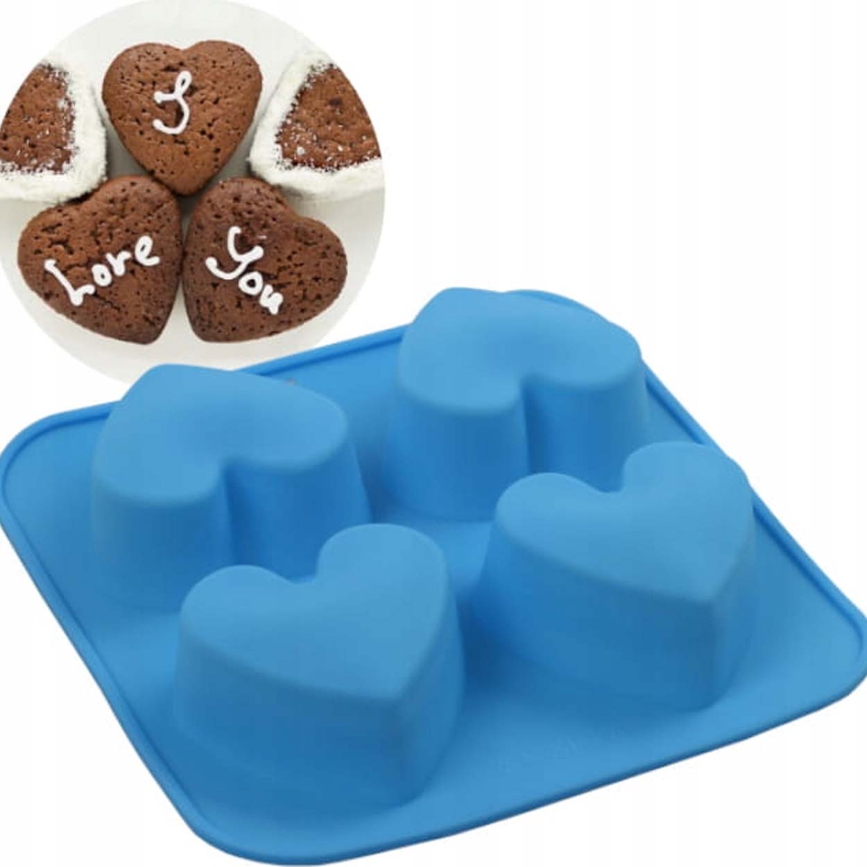 Smidig hjärtform i silikon med 4 formar – perfekt till muffins, cupcakes, choklad, gelé, desserter samt DIY-projekt som tvål och ljus. Formen är flexibel, slitstark och enkel att använda. Silikonet leder värme bra, vilket kan korta baktiden och spara energi. Dessutom fastnar inte smet eller choklad lika lätt, så det är lätt att få fina hjärtan utan krångel.
