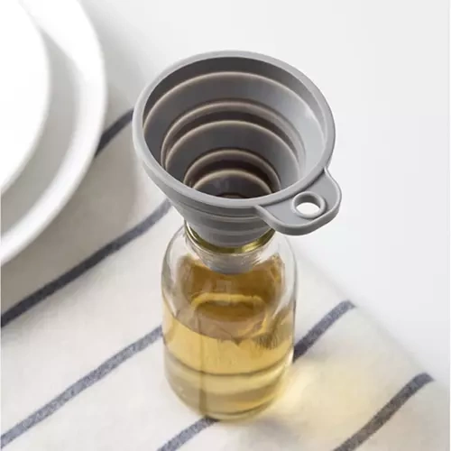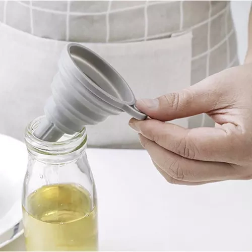 Letar du efter en smart liten tratt som klarar allt från kökspåfyllning till att hälla bilvätskor utan spill? Denna hopfällbara tratt i silikon är lätt, tålig och tar nästan ingen plats när den inte används. Vik ihop den som ett dragspel och stoppa den i handskfacket, lådan eller häng upp den i köket — perfekt när du behöver en snabb och hygienisk lösning för att fylla flaskor, burkar eller dunkar.