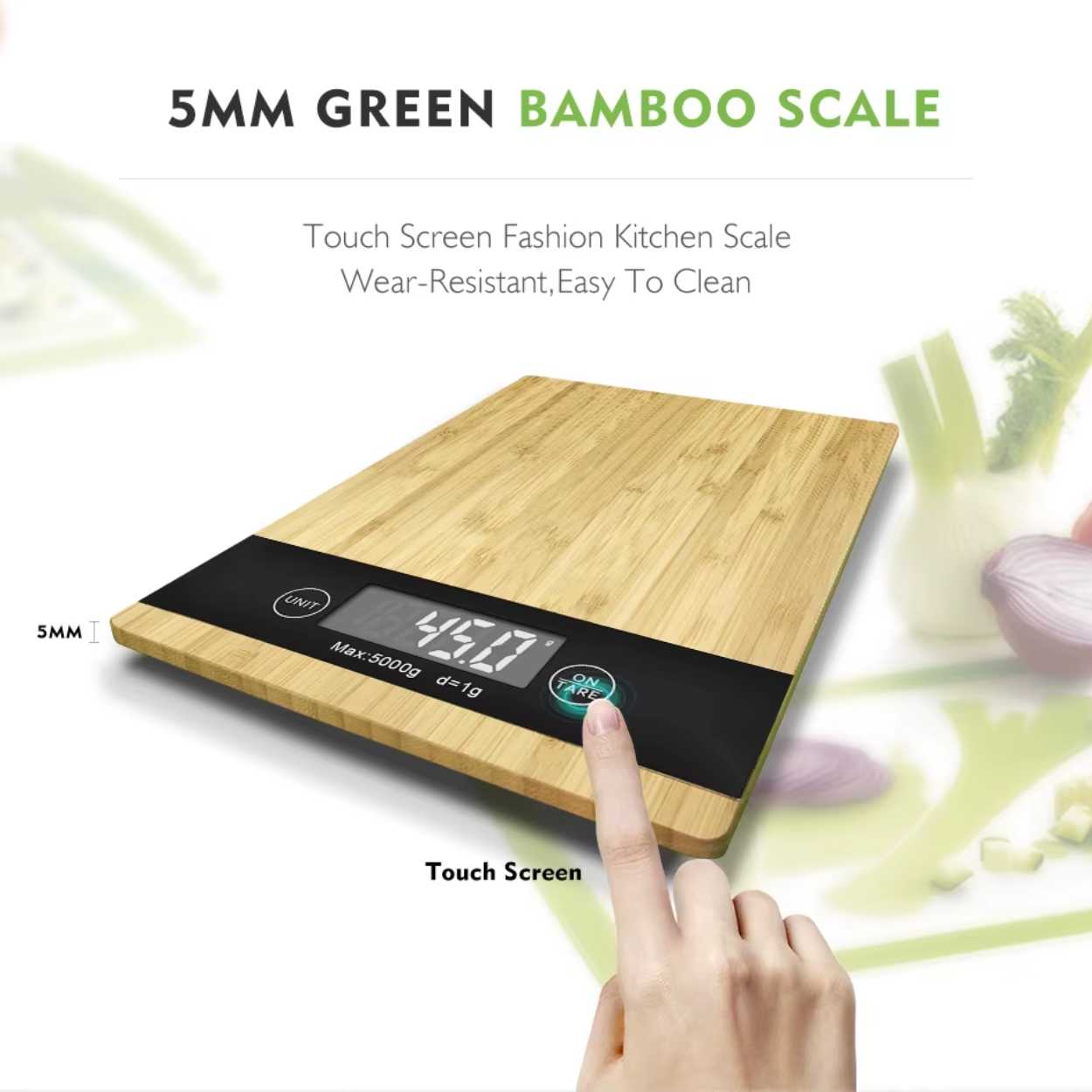 Denna eleganta elektroniska bambu köksvåg kombinerar stil och funktionalitet, perfekt för alla kök. Med en kapacitet på upp till 5 kg och en tydlig LCD-skärm, gör den vägningen av ingredienser både enkel och exakt. Den slitstarka bambuytan är inte bara estetiskt tilltalande utan också lätt att rengöra, vilket gör den idealisk för daglig användning. Oavsett om du bakar eller lagar mat, hjälper denna våg dig att uppnå perfekta resultat varje gång.