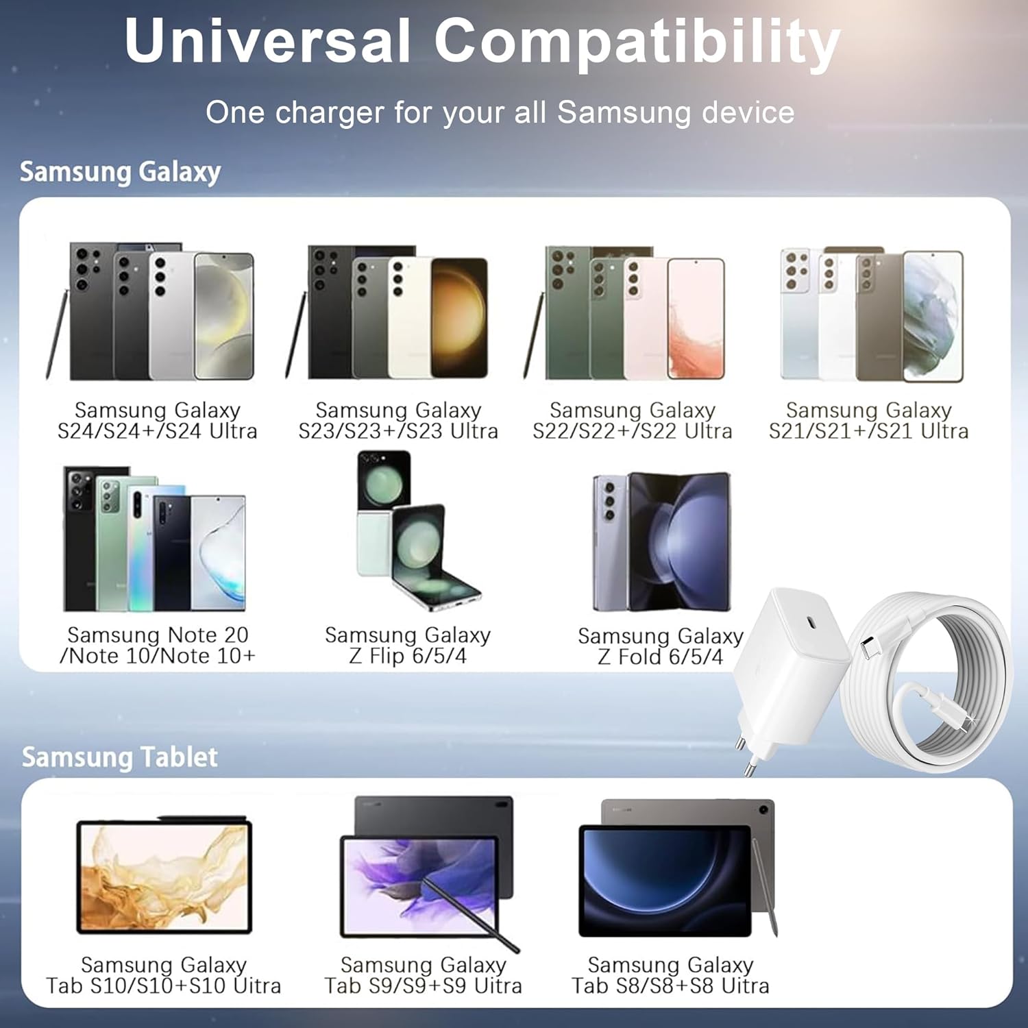 45W USB-C Snabbladdare med 1m Kabel för Samsung Galaxy, iPhone och Android-enheter – Vit