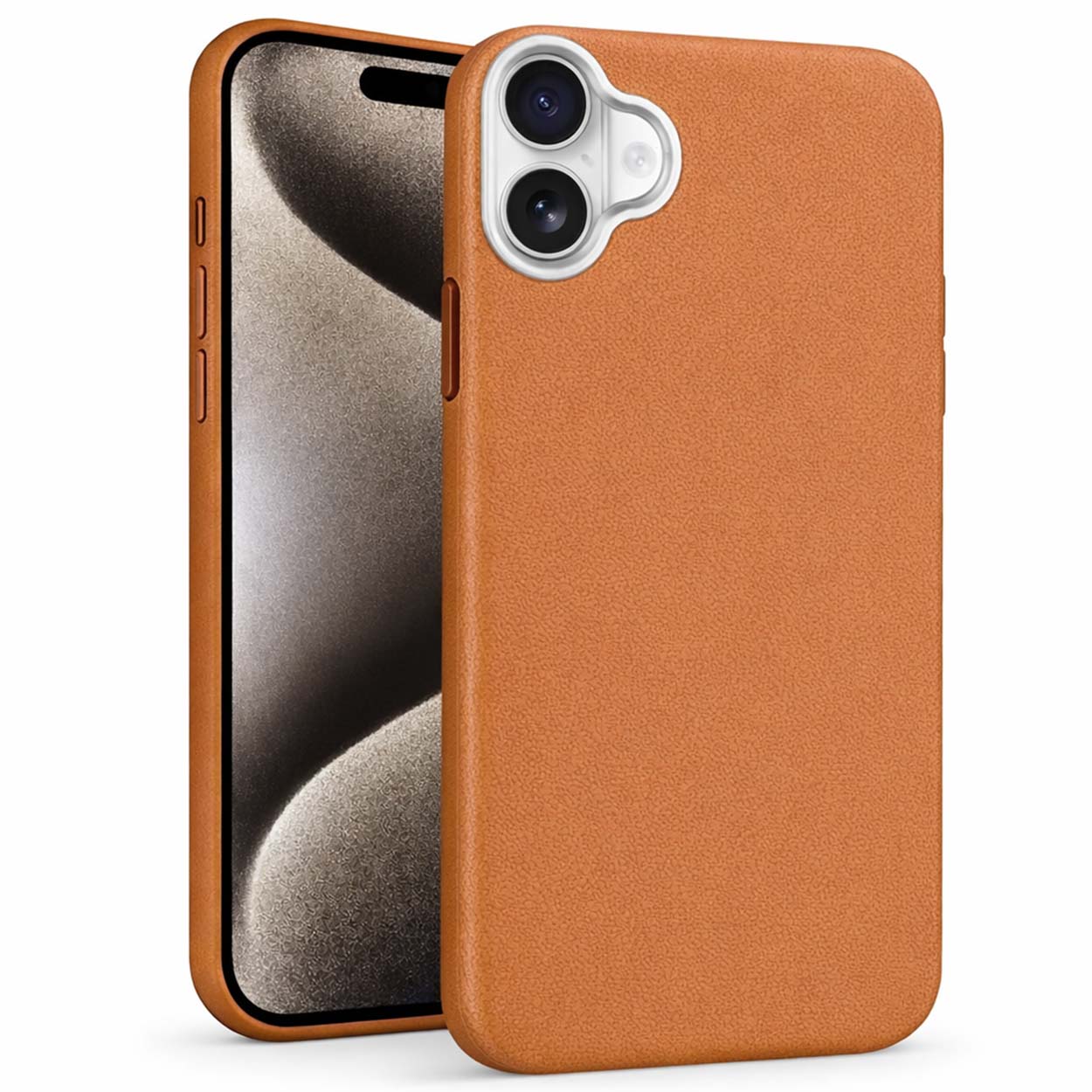 Tunt TPU-skal med läderfinish till iPhone 16 – Brun