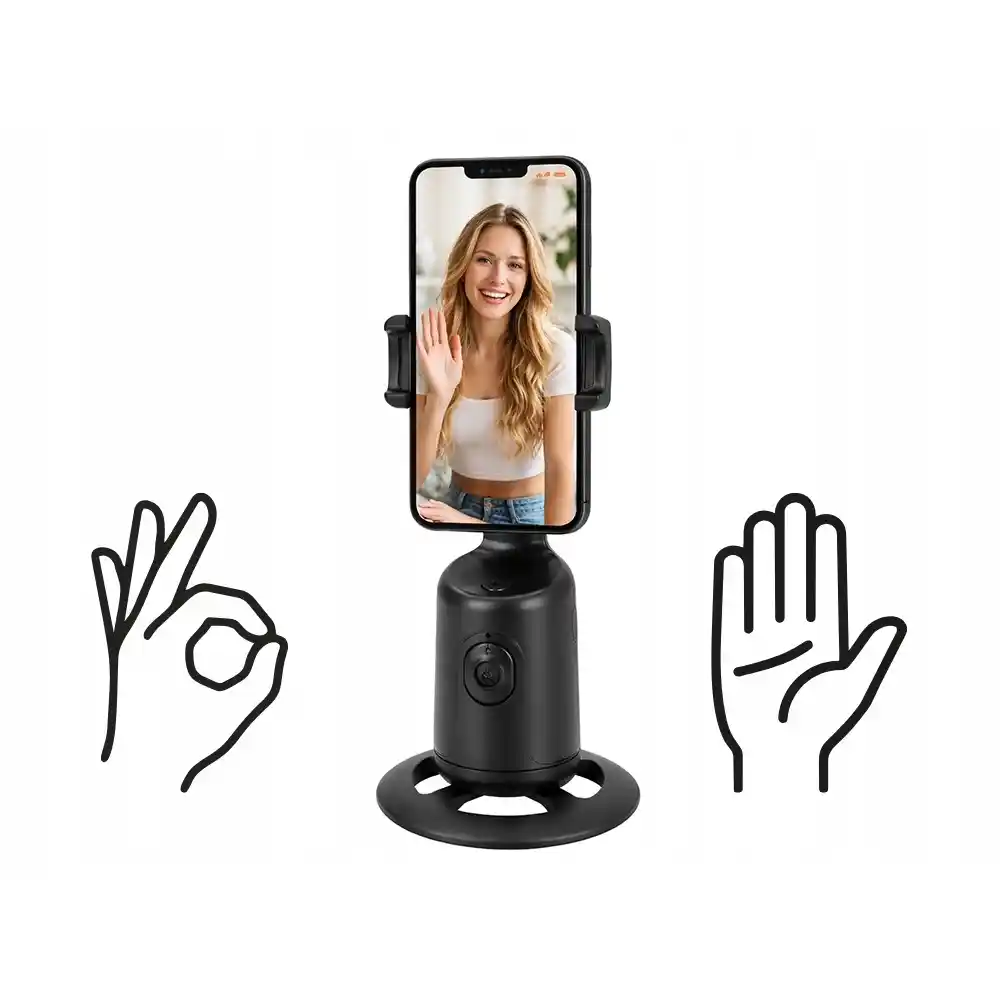Denna roterande mobilhållare med 360° auto face tracking håller dig alltid i fokus – perfekt för videos, livestreams, videomöten och sociala medier. Den inbyggda kameran känner av ditt ansikte och följer dina rörelser automatiskt, så att mobilen alltid är riktad mot dig.