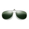 Snygga uppfällbara clip-on solglasögon i klassisk aviator/pilot-modell med metallbåge och polariserade linser.
