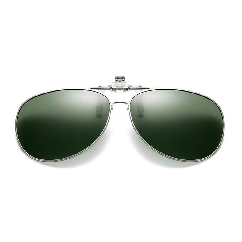 Uppfällbara Polariserade Pilot Clip-On Solglasögon Metall Grön