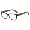 Rektangulära läsglasögon med skalmar i träimitation och blåljusskydd