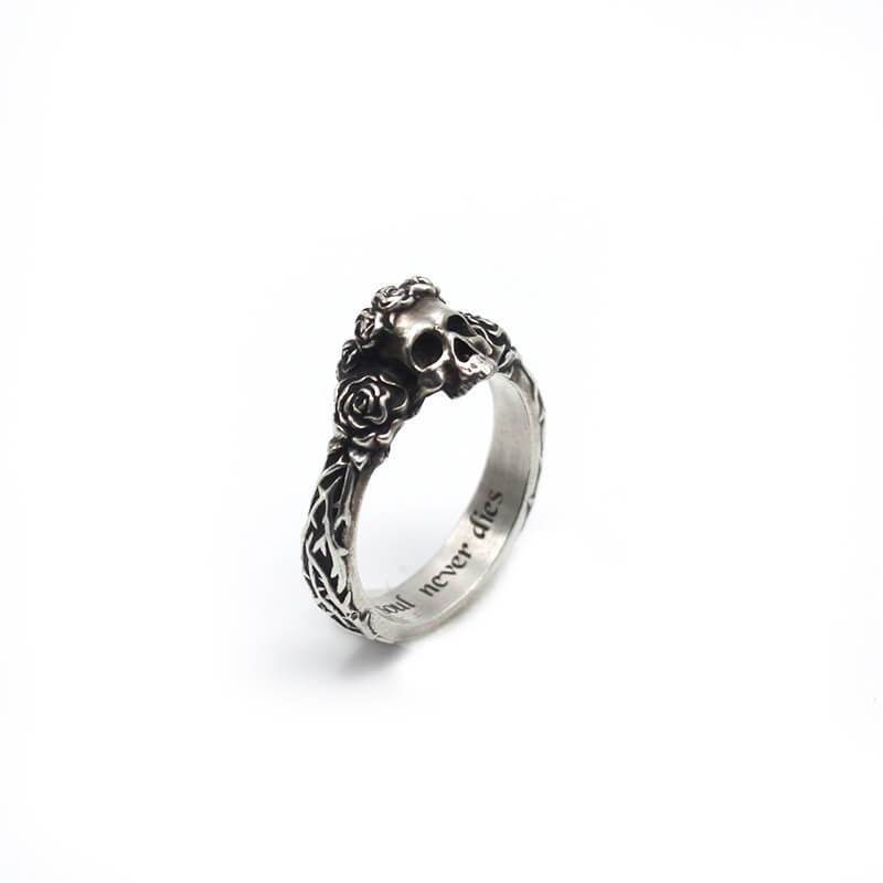Vill du ha något som är lika unikt som du själv? Vår smala dödskallering med rosor är den perfekta mixen av tufft och romantiskt. Den här ringen är för dig som vill sticka ut och visa din personliga stil.