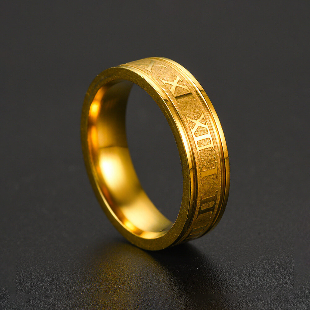 Smal ring i guld med romerska siffror.