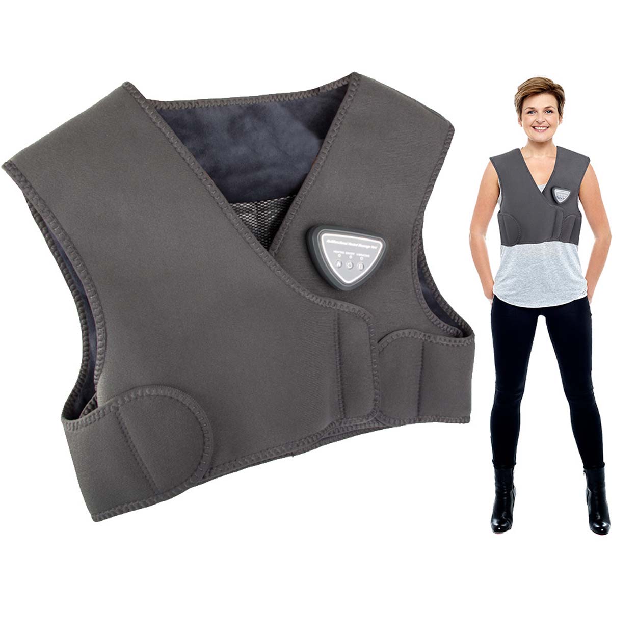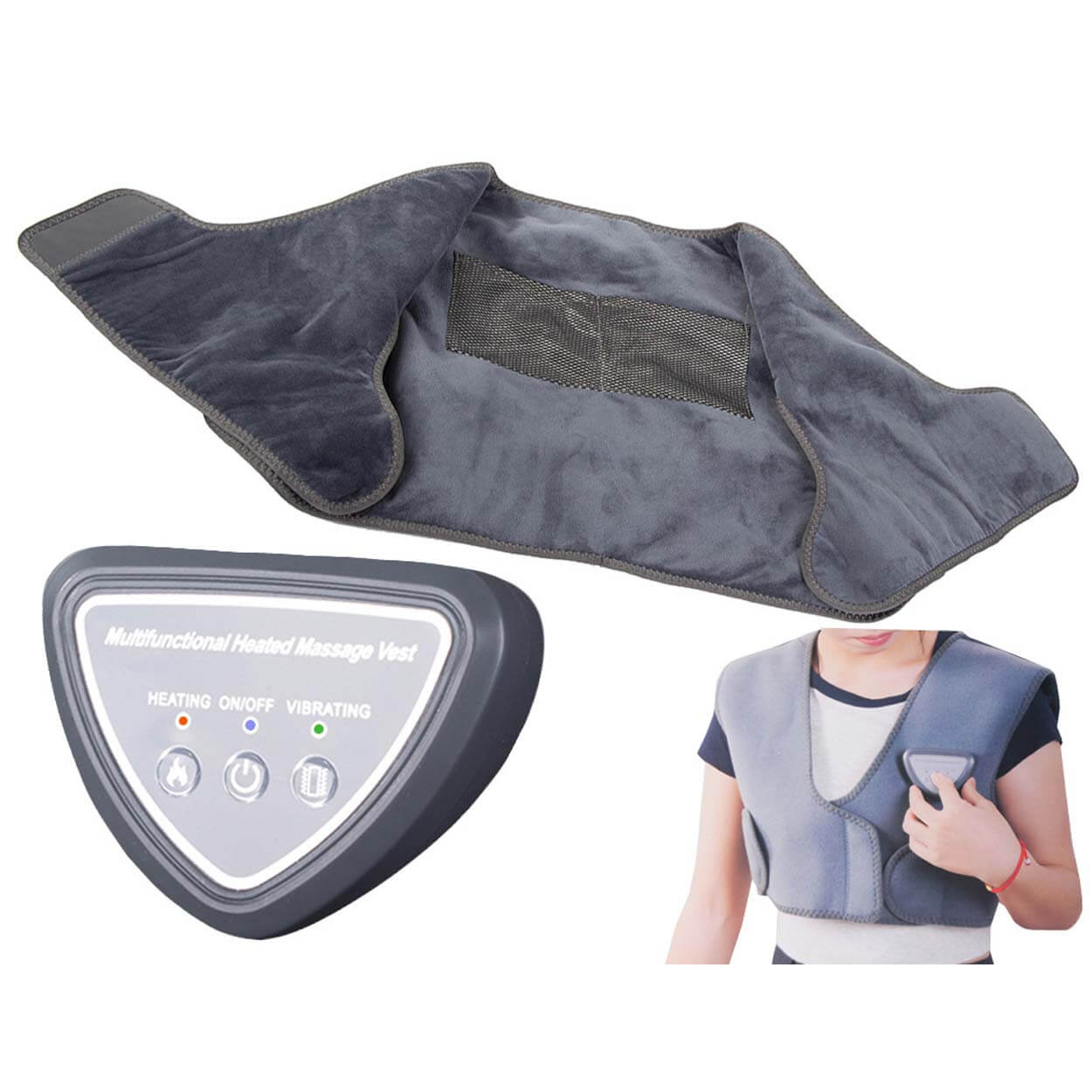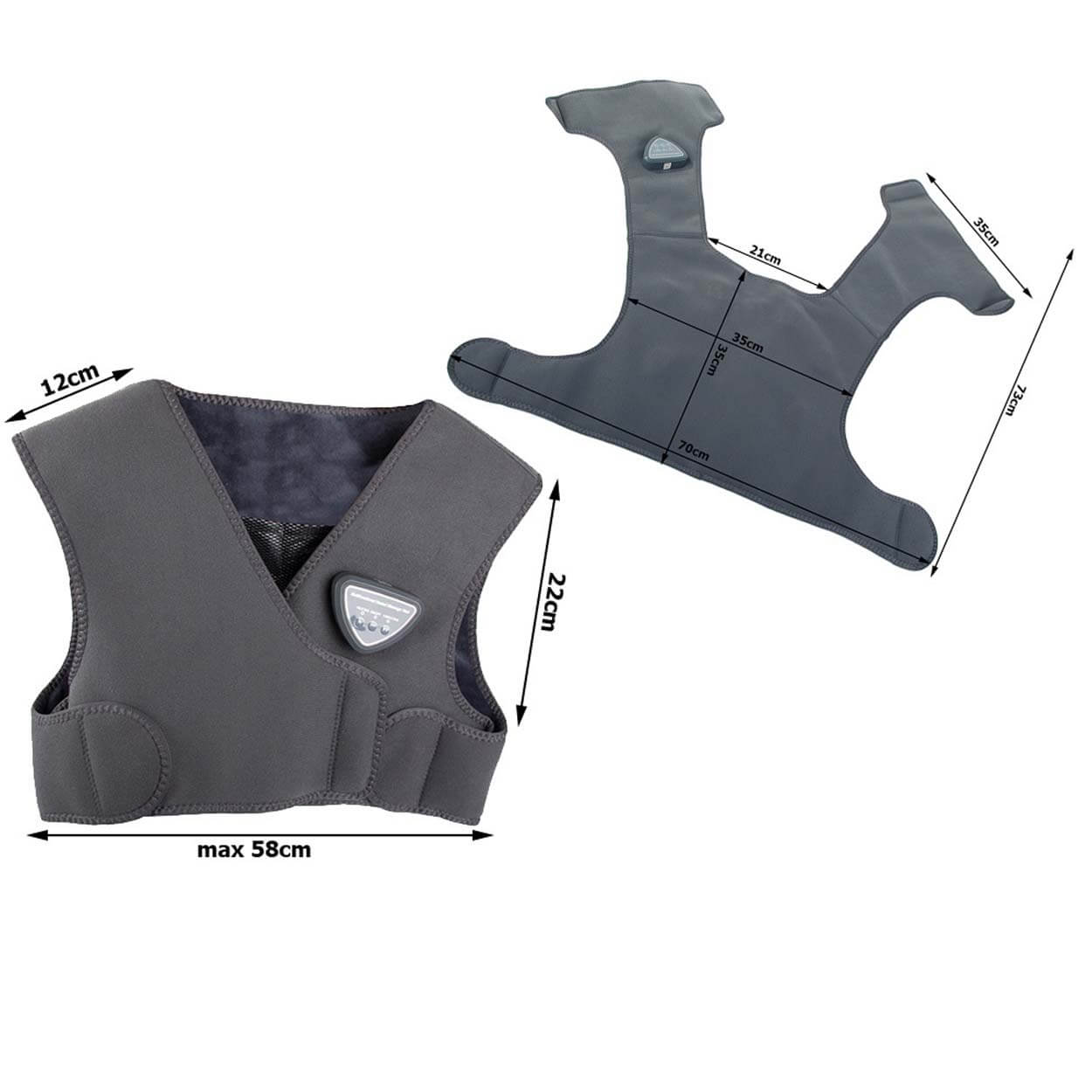 Västen har tre olika massagelägen som främjar blodcirkulationen och hjälper till att släppa på spänningar i musklerna. Du kan enkelt välja mellan stark, växlande eller mjuk massage. Det intuitiva kontrollsystemet gör användningen enkel, och med USB-laddning kan du använda den var som helst – anslut den till en powerbank, laptop eller annan laddningsenhet.