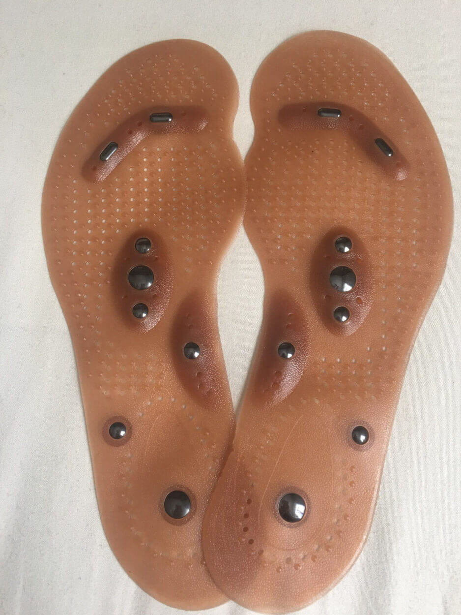 Akupunktursulor med magneter bygger på metoden för akupressur/zonterapi, nämligen att det i våra fotsulor finns nervändar från de flesta av kroppens organ. Sulorna har 8 magnetiska akupunkturplattor strategiskt placerade för att stimulera de viktigaste reflexzonerna, vilket kan främja kroppens välbefinnande. Denna typ av akupunktur/massage främjar även blodcirkulation.