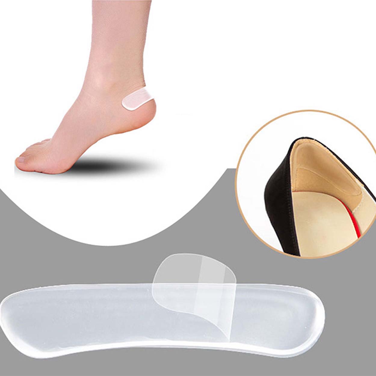 Dessa geléhälkuddar ger en fantastisk gångkomfort och skyddar dina fötter från skavsår. Perfekta för nya skor med hårda klackar, dessa kuddar förhindrar att foten glider ur för lösa skor. Tillverkade av färglös gel, är de nästintill osynliga och passar utmärkt till både klackskor och all sorts sommarfotbeklädnad. Den självhäftande ytan ser till att de sitter på plats när du går.